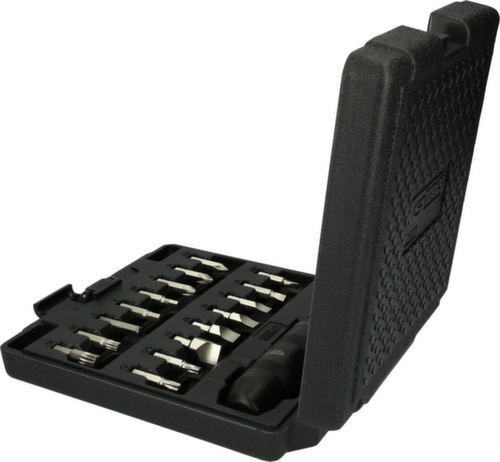 "longDescription": "omkeerbaar, vierkantaandrijving volgens DIN 3120 / ISO 1174 met kogelvergrendeling, 1/4 slag van de schroevendraaier door hamerslag (parabolisch mechanisme), optimale doorvoer, geen wegglijden van de bitplaat mogelijk, voor het losdraaien van vastzittende schroefverbindingen, ideaal voor gebruik in de automobielsector, inclusief de meest gangbare powerbits en powerbit-adapter, speciaal gereedschapsstaal, in stevige kunststofkoffer<br>",