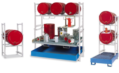 "longDescription": "<h2>Aftapstelling en stapelframe</h2><strong>direct te gebruiken aanbiedingen</strong><br><ul><li>Geschikt voor waterverontreinigende en ontvlambare stoffen</li><li><strong>corrosiewerend en stabiel</strong> - frame van verzinkt staal</li><li><strong>gemakkelijk transport</strong> - vanaf 1390 mm breed met vorksloffen</li></ul><br><h3>De keuze is aan jou:</h3><ul><li><strong>praktische complete aanbiedingen of individuele aanbiedingen</strong> - met vastgelaste vatensteunen of roosterlegborden</li><li><strong>bijpassende opvangbakken</strong> - naar keuze als uitschuifbare, vaste of combi-opvangbak</li></ul><br><strong>Staande opvangbak</strong><br><ul><li><strong>volledig opvangvolume te benutten</strong> - met uitneembaar en vuurverzinkt rooster</li><li><strong>staat stevig</strong> - rooster met rand, waarop de stapelkast wordt vastgeschroefd</li><li><strong>geschikt voor transport met vorkheftruck</strong> door praktische onderrijdhoogte</li></ul><br><strong>Bepalingen!</strong><br>Model van de opvangbakken officieel toegelaten. Te gebruiken voor aquatoxische, ontvlambare (vlampunt > 55°C) en agressieve stoffen voor opslag onder dak.<br>",