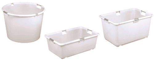 "title": "Conische bak met aluminium buisframe, wit, inhoud 106 l",