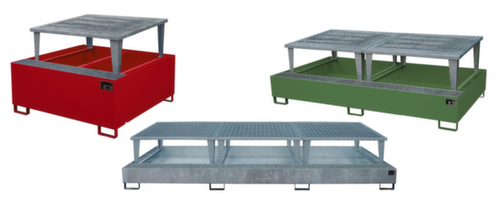 "description": "v. 3xIBC, opvangvol. 1000l, HxBxD 780x3850x1460mm, m. 3aftapbokken, staal, RAL6011",