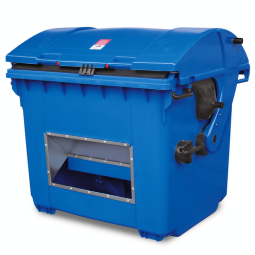 "description": "660l, HxBxD 1000x1360x765mm, HDPE, blauw, deksel blauw, m. m. ingreep",