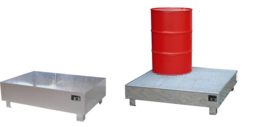 "longDescription": "<h2>Lekbak</h2><strong>voor 200 liter vaten</strong><br><ul><li>geschikt voor milieugevaarlijke, watervervuilende en brandbare materialen</li><li>Absoluut weerbestendig en duurzaam - gemaakt van thermisch verzinkt plaatstaal</li><li><strong>eenvoudig transporteren</strong> - dankzij steunvoeten onderrijdbaar met vorkhefwagen of heftrucks</li></ul>Milieugevaarlijke, waterverontreinigende en ontvlambare stoffen kunnen veilig in deze opvangbak worden opgeslagen. Het is geschikt voor opslag onder dak, d.w.z. dat het kan worden opgeslagen in een hal of onder een overkapping die aan de zijkant open is, met inachtneming van de wettelijke voorschriften. <br><br>Aangezien gevaarlijke stoffen soms op verschillende plaatsen nodig zijn, kan de opvangbak indien nodig gemakkelijk met een vorkheftruck worden vervoerd. Naar keuze met of zonder rooster, zodat de vaten hetzij rechtstreeks in de opvangbak kunnen staan, hetzij op het rooster kunnen worden geplaatst. De opvangbak is gemaakt van gegalvaniseerd plaatstaal van 3 mm dik, absoluut lekvrij en geschikt voor 2 of 4 vaten van 200 liter.<br><br><strong>Bepalingen!</strong><br>Model van de opvangbakken officieel toegelaten. Te gebruiken voor aquatoxische en ontvlambare stoffen voor opslag onder dak.<br><br><strong>Goed om te weten!</strong><br>Een opvangbak moet de inhoud van de grootste bak, ten minste 10% van de opgeslagen hoeveelheid, opvangen. In waterwingebieden moet de gehele opgeslagen hoeveelheid opgevangen kunnen worden (100%).<br>",