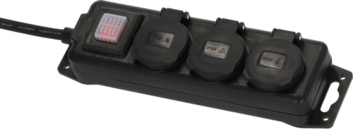 De belangrijkste details in één oogopslag:uitgerust met stekkerdozen met zelfsluitende afdekkapjes en schakelaar in- en uitschakelen. 3 stekkerdozen, verdeling: 3 x 230 V stekkerdozen. stekker recht. 45 ° gedraaide stekkerdozen voor ruimtebesparende verdeling van ingeplugde apparaten.