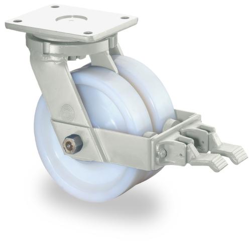 "title": "BS-ROLLEN Dubbel zwaarlastwiel als zwenkwiel met rem, draagvermogen 1800 kg, kunststof banden",