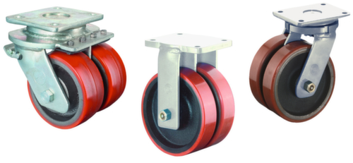 "title": "BS-ROLLEN Dubbel zwaarlastwiel, draagvermogen 7000 kg, polyurethaan banden",