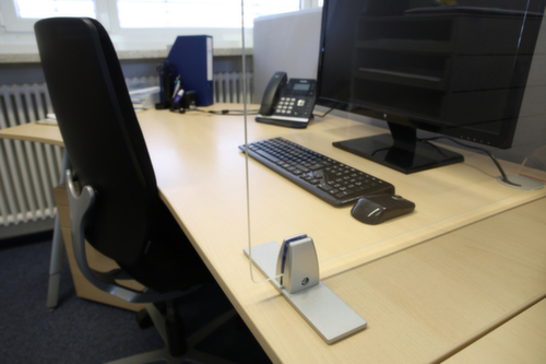 "description": "v. anti-speekselscherm, v. scheidingswand B 2-6mm, HxB 65x200mm, m. beschermende, rubberen bekleding, zilverkleurig",