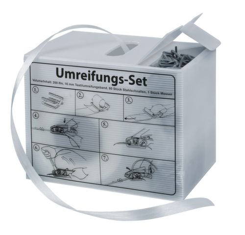 }Omsnoeringsset met PE-band, bandbreedte 16 mm