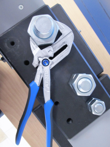 "longDescription": "Fonction de clé et de pince en un seul outil, DIN ISO 5743, Peut remplacer deux jeux complets de clés, métrique et impériale (0 - 52mm ou 0 - 2\"), Montage en douceur de vissages sensibles à la surface (par ex. robinetterie chromée), Outil universel réglable pour le vissage, Parfait pour le pliage, le maintien, le pressage et la préhension de différentes pièces, Appui sans jeu et sans risque d'endommager les arêtes, Réglage de la largeur de clé par mécanisme coulissant et mâchoires guidées parallèlement, pratiquement en continu, Enclenchement sûr du réglage lorsque la largeur de clé est sélectionnée, Activation du mécanisme coulissant à partir de pratiquement toutes les positions de réglage, Utilisable comme \"clé à cliquet\" - serrage et desserrage rapides et confortables de vis et d'écrous hexagonaux, Rapport de transmission élevé (>1 :10) permet une force de pression et de serrage élevée au niveau des mâchoires, Fabriqué en acier à traitement spécial GEDORE pour les sollicitations les plus élevées, Utilisable comme étau puissant en déplacement, Adaptation optimale et ergonomique de la position de la main à la largeur d'ouverture des mâchoires ou de la clé. Mâchoires de protection disponibles en option<br>",