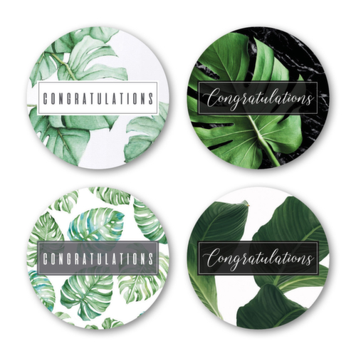 "metaDescription": "500 étiquettes cadeaux ronde - 4modèles par rouleau, message \"Congratulations\"",