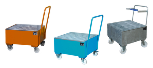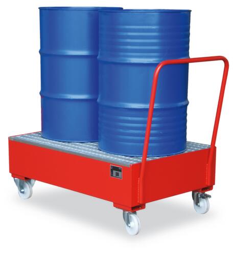 "description": "p. fût 2x200l, vol. rétention 200l, HxlxP 515x1200x800mm, a. caillebotis, poignée, acier, RAL3000",