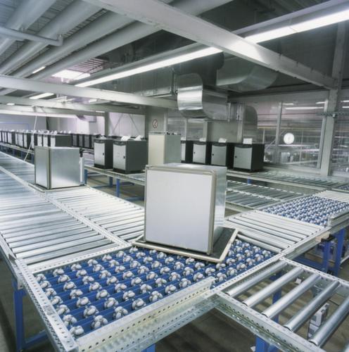 "description": "rouleau de manutention en acier, roulette Ø 50mm, convoyeur Lxl 3m x 700mm, empattement 100mm",
