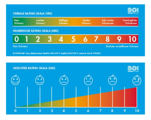 "longDescription": "<h2>BOI règle de douleur</h2><h3>pour évaluer l'intensité de la douleur</h3>Convient pour établissements de santé. <ul><li>hauteur x largeur 200 x 75 mm</li><li>en Polypropylène en bleu</li><li>Symbole/texte : Échelle de douleur numérique avec des visages</li></ul>",
