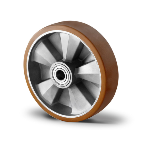 "description": "force 800kg, Ø 200mm, bandage PU, Double roulement à billes, jante alu",