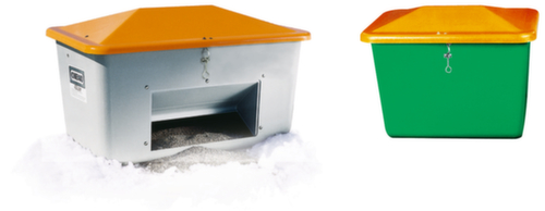 "description": "1500l, HxlxP 1040x1840x1430mm, plastique renforcé de fibre de verre, gris, couvercle orange, parois a. empiètement",