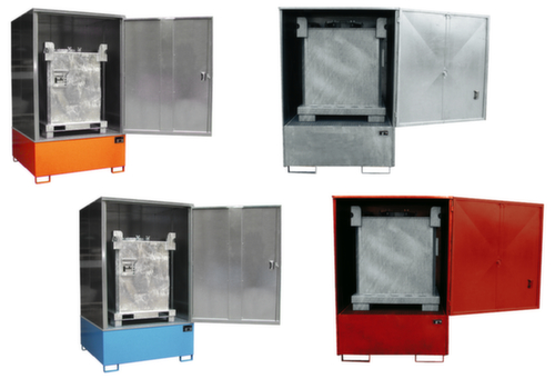 "description": "pour fûts 4x200 l ou 1xGRV/IBC, Tôle d'acier, en différents coloris",