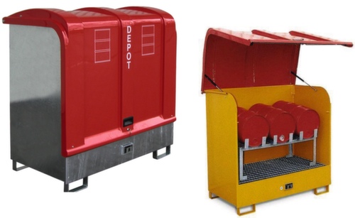 "metaDescription": "Box de rétention - 2x200 l, Volume de rétention 220 l, Coiffe en plastique renforcé de fibres de verre, Corps acier, galvanisé ou orange",