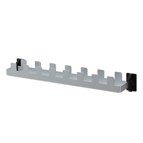 "description": "p. plaque de rangement perforée, p. 10 pièces, horizontal, supports incl., HxlxP 35x304x40mm, argent/noir, métal",