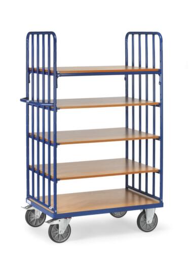 "description": "force 500kg, 5plateau(x), plateau Lxl 1000x600mm, boisplateau, RAL5007, bandage caoutchouc plein",