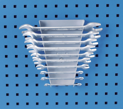 "longDescription": "Adapté aux tôles perforées avec trous carrés 10 x 38 mm, Pour 10 clés No. 2, 6, Revêtement par poudre, Livré sans outils<br>",