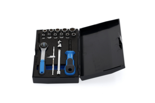 "longDescription": "Avec douilles forgées, trempées, à commande manuelle, profil UD 12 pans, Avec outils de commande en acier au vanadium 31CrV3, Avec cliquet réversible à denture extra-fine, En coffret plastique, Dimensions : 200 x 120 x 38 mm<br>",