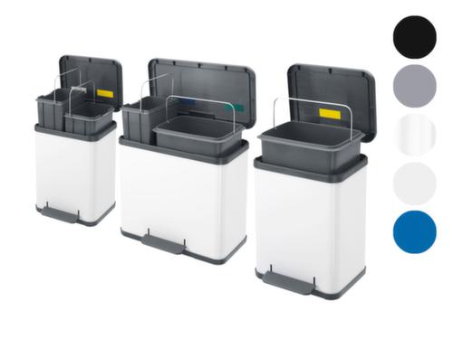 "description": "3x9l, HxlxP 430x470x340mm, seau intérieur plastique, corps acier blanc, couvercle plastique, Anneau de fond",