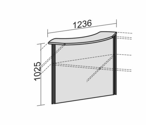 "description": "Hxl 1025x1236mm, face avant blanc, plateau de banque d’accueil incurvé",