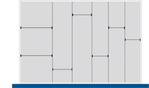 "description": "7sép.longitudinaux/5sép. en tôle, p. face avant H 75mm, p. armoire lxP 1050x750mm, lxP 1050x750mm",