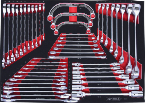 "longDescription": "<ul><li class=\"liste\">1/1 Insert système</li><li class=\"liste\">convient aux servantes d'atelier et aux mallettes à outils</li><li class=\"liste\">disposition fixe grâce à un enrobage précis</li><li class=\"liste\">résistant à l'huile et aux produits chimiques</li><li class=\"liste\">insert en mousse tricolore de haute qualité</li></ul><br>",