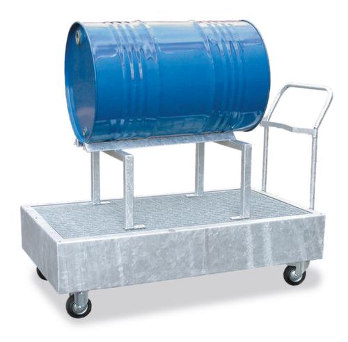 "description": "p. fût 2x200l, vol. rétention 220l, HxlxP 405x1400x800mm, a. caillebotis, poignée, acier, RAL 5015",