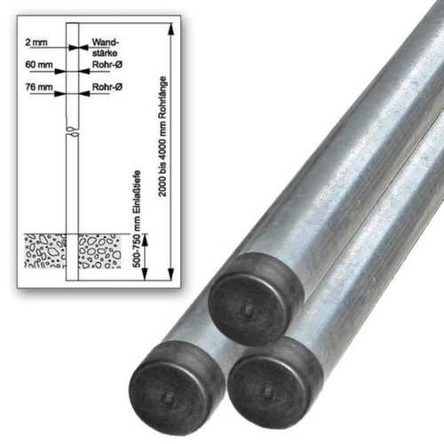 "description": "p. panneau de sortie de secours, ancrage au sol en fer rond, HxØ 3500x60mm, acier galvanisé",
