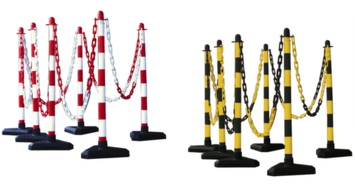 "description": "6potelets, chaîne 10m, Ø montant 40mm, L 10m, montant plastique, jaune/noir, chaîne jaune/noir",