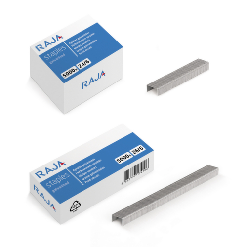 "longDescription": "<h2>Agrafes pour le bureau et l'organisation RAJA 24/6</h2><p>Qui ne veut pas d'une forte cohésion ? Les agrafes sont un bon moyen de classer et de trier proprement vos documents. Elles maintiennent les différentes pages de papier ensemble et permettent ainsi d'éviter de perdre des documents ou des informations importantes. Les agrafes RAJA en acier galvanisé sont résistantes à la manipulation et à l'oxydation et sont donc idéales pour une utilisation au bureau, à la maison, en déplacement ou à l'école. Les agrafes sont par exemple idéales pour l'agrafeuse Rapid, que vous trouverez également dans notre assortiment.Les agrafes sont disponibles en deux tailles différentes et sont conditionnées par unité de 5.000 agrafes par boîte. Pour classer ultérieurement les documents agrafés, nous vous recommandons nos bacs de classement à usage rapide ou nos classeurs et répertoires. Vous trouverez également chez nous une sélection de perforateurs.</p><br>",