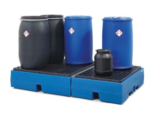 "description": "p. fût 2x200l/bidons, vol. rétention 270l, HxlxP 375x900x1300mm, a. caillebotis plastique, fourreaux pour fourche",