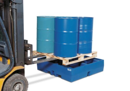 "description": "p. fût 1x200l/bidons, vol. rétention 240l, HxlxP 525x760x910mm, a. caillebotis plastique, fourreaux pour fourche",