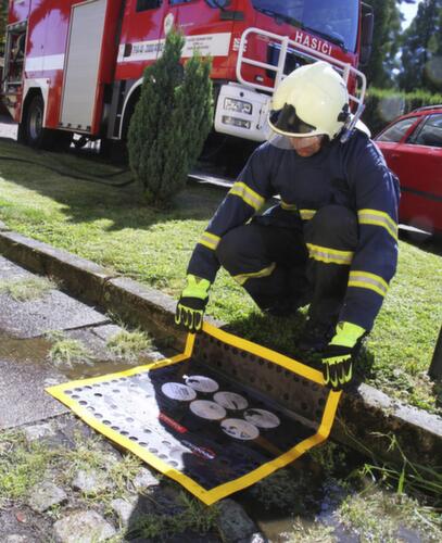 "metaDescription": "Protection d’égouts pliable - résiste aux produits chimiques/à la température, Lxl 750x630mm, plastique, gris/jaune",