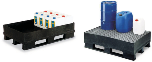 "metaDescription": "Palette de rétention - en PE, pour 4 fûts de 60 litres, avec ou sans caillebotis",