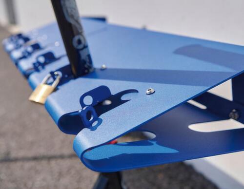 "longDescription": "<h2>Support pour scooter</h2><strong>pour le stationnement et le rangement des scooters pédestres</strong><br><ul><li>Protégé contre la corrosion et robuste - en acier galvanisé à chaud avec finition peinte</li><li>Sécurité pratique - verrouillage et déverrouillage automatiques du guidon</li><li>Anti-vols - avec dispositif de verrouillage pour cadenas (cadenas non inclus)</li></ul><br><h3>Vous avez le choix :</h3><ul><li>Pour un montage au mur ou au sol avec une plaque de base</li></ul>",