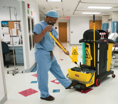 "metaTitle": "Rubbermaid Camion de nettoyage verrouillable Hygen avec sac poubelle - Chariot de nettoyage",