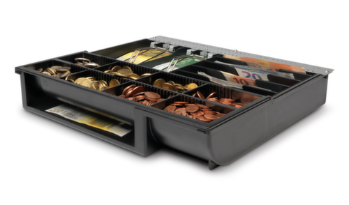 "description": "6compart. à billets/8monnaie, HxLxl 64x358x328mm, plastique/métal",