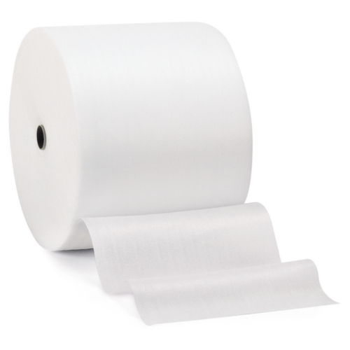 Le film mousse en rouleau, résistant à la déchirure et amortissant les chocs, est la protection optimale pour vos produits à surfaces fragiles, comme les tableaux, le verre, la porcelaine, les appareils électroniques, le bois peint et les articles en cuir. Cette protection flexible permet d'envelopper facilement vos produits de presque toutes les formes. Ils sont ainsi protégés contre les rayures, la casse, la poussière et l'humidité. Vos marchandises aux surfaces fragiles sont ainsi protégées de manière optimale pendant l'expédition, le stockage, le transport et le déménagement. - Avantages financiers lors de l'expédition grâce au faible poids propre de la protection en mousse - la protection antichoc en mousse est imperméable à l'eau et protège ainsi vos produits de l'humidité - matériau : polyéthylène (PE) souple à cellules fermées, densité 20 kg/m³ - diamètre du mandrin du rouleau : 7,6 cm