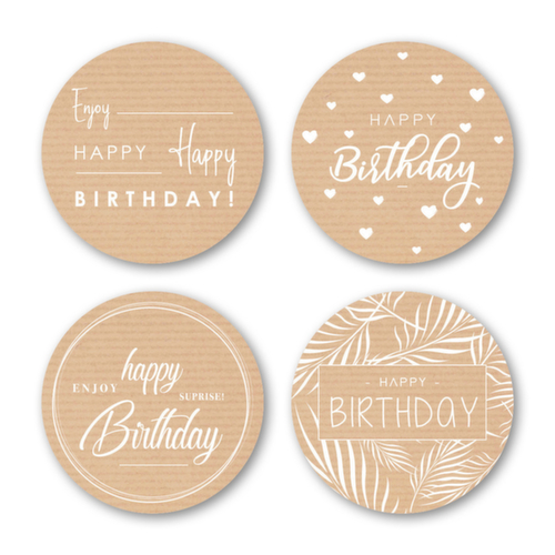 "metaDescription": "500 étiquettes cadeaux ronde - 4modèles par rouleau, message \"Happy Birthday\"",