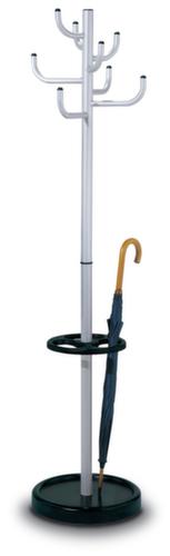 "description": "HxØ 1740x450mm, 8crochets portem., porte-parapluies/égouttoir, acier, finit. peinture époxy, aluminium argenté / noir",