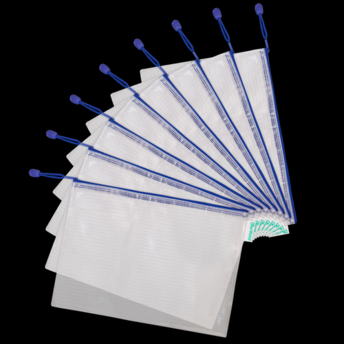 "description": "DIN A4, Hxl 240x330mm, PVC, transparent, fermeture éclair triés selon les couleurs",