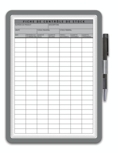 "description": "DIN A4, format vertical/horizontal, argent, face arrière autocollante, a. porte-crayons, réutilisable",