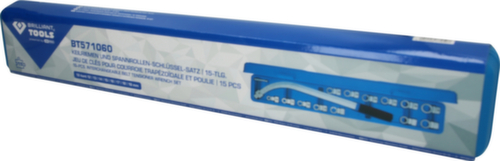 "metaDescription": "Brilliant Tools Jeu de clés pour courroie trapézoïdale et poulie de tension - 15pièces.",