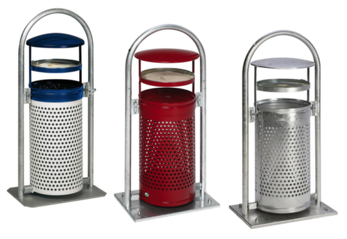 "description": "a. piètement tubulaire en forme d'arceau, HxlxP 1080x580x380mm, poubelle capacité 65l, corps galvanisé à chaud, a. toit protec.",