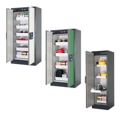 "description": "p. substances inflammables/toxiques, type 90, HxlxP 1953x1193x615mm, double porte battante, 6xtablette de rétention/tablette de rét., corps RAL7016, face avant argent",