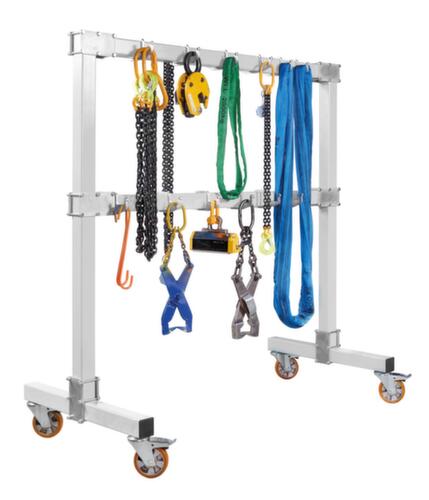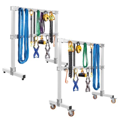 "longDescription": "<h2>Armoire pour les élingues</h2><strong>pour plus d'ordre et de propreté</strong><br><ul><li>Equipement individuel - crochets doubles coulissants</li><li>Toujours à la bonne hauteur - barres transversales réglables en hauteur</li><li>Protection efficace contre la corrosion - fabriqué en acier avec une finition de peinture</li></ul><br>L'armoire pour votre matériel de levage de la marque Vetter Krantechnik peut être utilisée de manière flexible pratiquement partout. Il garantit un rangement plus ordonné et systématique de vos câbles de levage, chaînes et élingues. En outre, la durée de vie des élingues est augmentée par un stockage approprié.<br><br>Avec douze crochets doubles, le porte-manteau offre suffisamment d'espace. Les crochets peuvent être déplacés et la barre transversale est réglable en hauteur, ce qui vous permet de diviser l'espace de manière individuelle. La capacité de charge par crochet est de 75 kg et la capacité de charge totale est de 1000 kg. La construction en acier est également très robuste et la peinture protège durablement la surface. <br><br>Puisque l'armoire à bretelles est rapide et facile à monter et à démonter. Cela vous permet même l'utilisation mobile sur les chantiers de construction ou à court terme sur d'autres sites de production. En bref : avec cette garde-robe, vous économisez du temps et de l'argent ! Vos élingues sont toujours bien triées et rapidement à portée de main et le stockage professionnel augmente la durée de vie.<br><br><strong>Livraison !</strong><br><ul><li>La livraison est démontée</li></ul>",