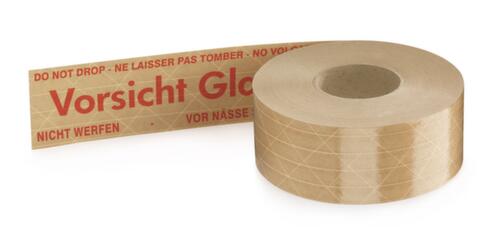 "metaDescription": "Bande d'avertissement gommée - « Attention verre », DE/EN/FR/ES, Lxl 150m x 50mm, ruban marron, impression rouge",