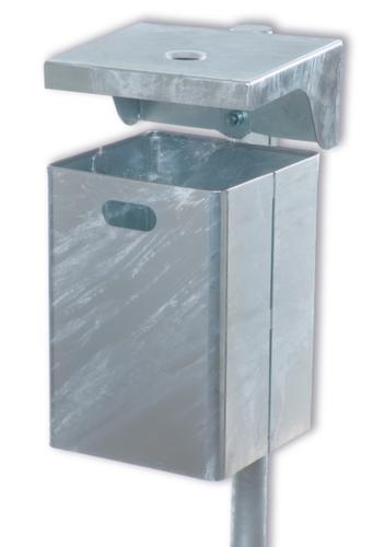 "description": "HxlxP 525x310x310mm, poubelle capacité 50l, à sceller dans béton, corps galvanisé à chaud, a. toit protec.",